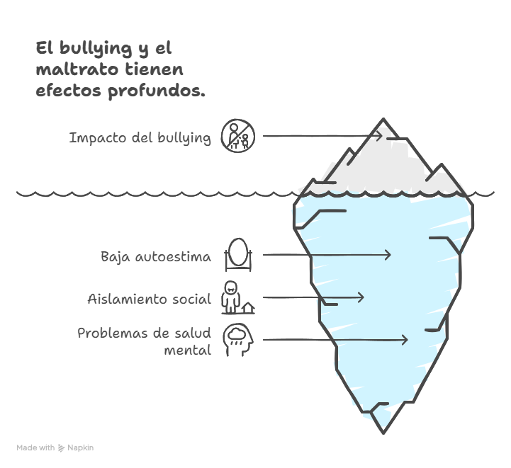 El bullying afecta profundamente a quienes lo sufren, deteriorando la autoestima y obstaculizando la capacidad de enfrentar el mundo con confianza. Este trauma emocional también puede manifestarse en aislamiento social y problemas de salud mental.